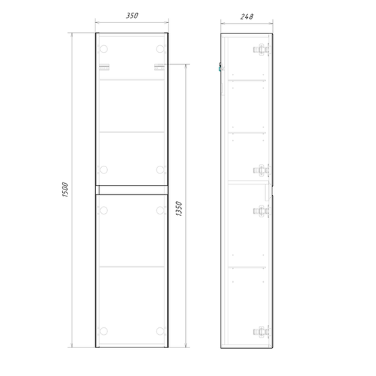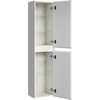 Пенал Aqwella Geometria 35 оснащен двумя дверцами на петлях с мягким закрыванием, внутри расположены полочки. Фасады и боковины с обработкой торцов под углом 45 градусов создают лаконичность и изящный, почти монолитный силуэт в закрытом состоянии. Все грани имеют округлую фрезеровку, обеспечивая приятные тактильные ощущения при открывании. Внутри - отделка под светлый камень.