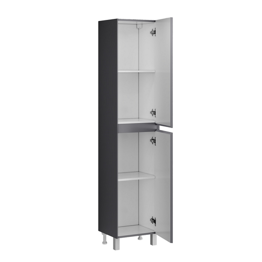 Пенал Меркадо 40 - компактное и функциональное решение для хранения в ванной комнате. Корпус и фасады выполнены из МДФ в матовой краске в цвете графит. Фасады с точным запилом под 45° на торцах, что исключает видимую кромку и позволяет обходиться без ручек, создавая аккуратный и минималистичный дизайн. Пенал оснащён тремя полками для удобного хранения и петлями с доводчиком, обеспечивающими плавное и бесшумное закрывание дверцы. Модель установлена на хромированные ножки высотой 10 см, а для надёжного крепления предусмотрены подвесы в комплекте.