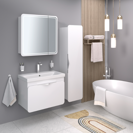 - Тумба Aqua de Marco Skandi 80 цвет "белый" с раковиной Cersanit Moduo 80.