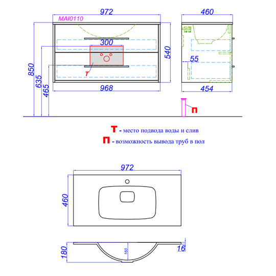4) Раковина (комплект мебели для ванной комнаты или тумба с раковиной)