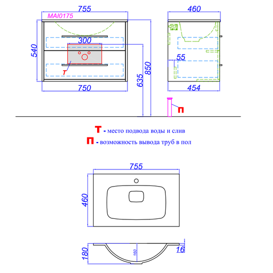 - Тумба Aqwella Майами 75 цвет "дуб сонома" с раковиной из литьевого мрамора Aqwella Malaga 75.