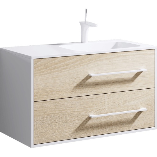 - Тумба Aqwella Майами 90 L/R цвет "дуб сонома" с раковиной из литьевого мрамора Aqwella Malaga 90 L/R.