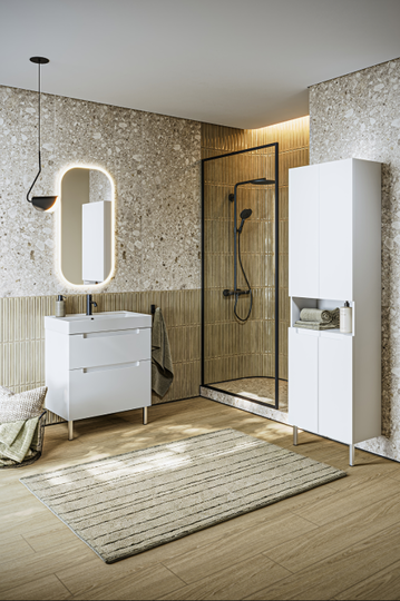 Тумба Ванкувер 70 на металлических ножках оснащена двумя ящиками с механизмами мягкого закрывания и тщательно организованным внутренним пространством с отделкой под дерево. Лаконичные фасады крашеные в белый цвет с интегрированной ручкой-зацепом подчеркивают чистоту форм и делают использование особенно удобным. Мебельный умывальник с декоративной вкладкой подчеркивает современный характер коллекции, а оптимальная глубина чаши обеспечивает комфортное ежедневное использование.