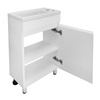 Тумба Эстима 40Н оснащена дверцей, за которой спрятана полочка. Тумба установлена на хромированные ножки. Корпус изготовлен из ЛДСП, фасады МДФ толщиной 16 мм. Корпус и фасады производства Kronospan. Бока и фасады крашеные итальянской эмалью. Тумба имеет как левую, так и правую ориентацию.