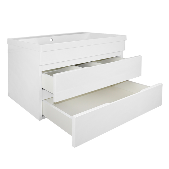 Тумба Эстима 80/2 оснащена двумя выдвижными ящиками на доводчиках скрытого монтажа. Корпус изготовлен из ЛДСП, фасады МДФ толщиной 16 мм. Корпус и фасады производства Kronospan. Бока и фасады крашеные итальянской эмалью.