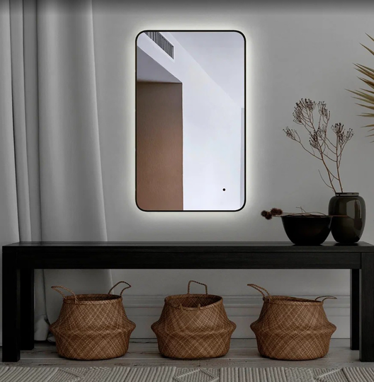 Зеркало лаконичной формы с матированной кромкой черного цвета. Модель сделана из стекла высшего качества M0 (влагостойкое, минимальные оптические искажения). Ореольная подсветка подчеркивает форму зеркала и создает эффект парения. Экологически чистый продукт выполненный по стандартам ЕС.